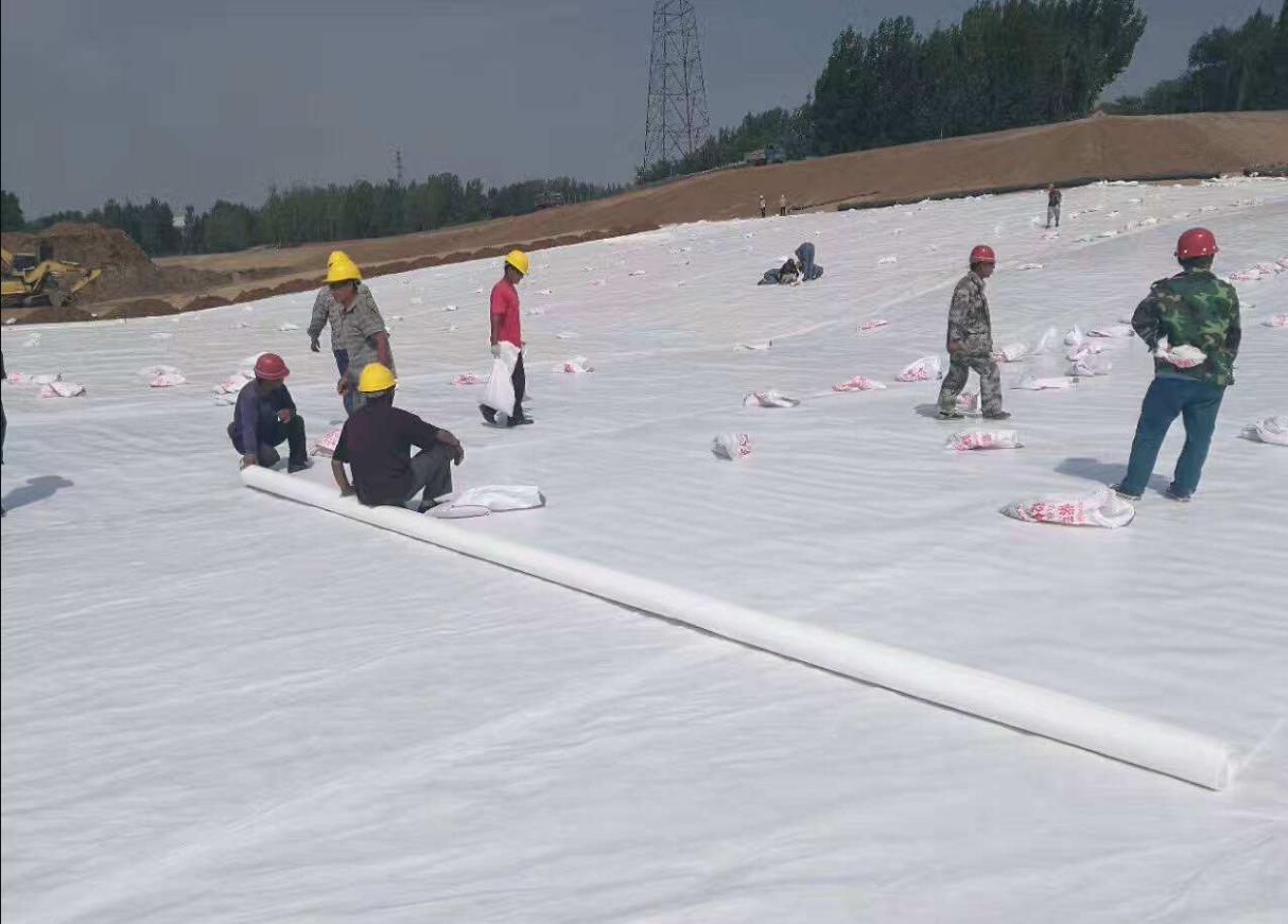 2、滌綸絲或短絲土工布的安裝一般用鋼筋搭接、縫線和電焊焊接幾類方式,縫線和電焊焊接的總寬通常為0.5m左右,鋼筋搭接總寬通常為0.3M左右,將會(huì)長(zhǎng)期性露出的土工布,則應(yīng)電焊焊接或縫線。