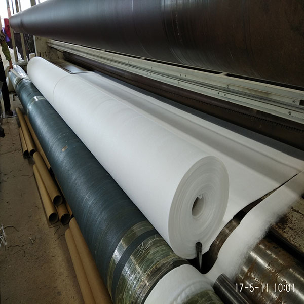 二、針刺無紡布與PE膜復(fù)合土工布,規(guī)格有一布一膜,二布一膜,最大幅寬4.2米主要原材料是要用滌綸短纖維針刺無紡布,PE膜通過復(fù)合而成,主要用途是防滲,適用于鐵路,高速公路、隧道、地鐵、機場等工程。